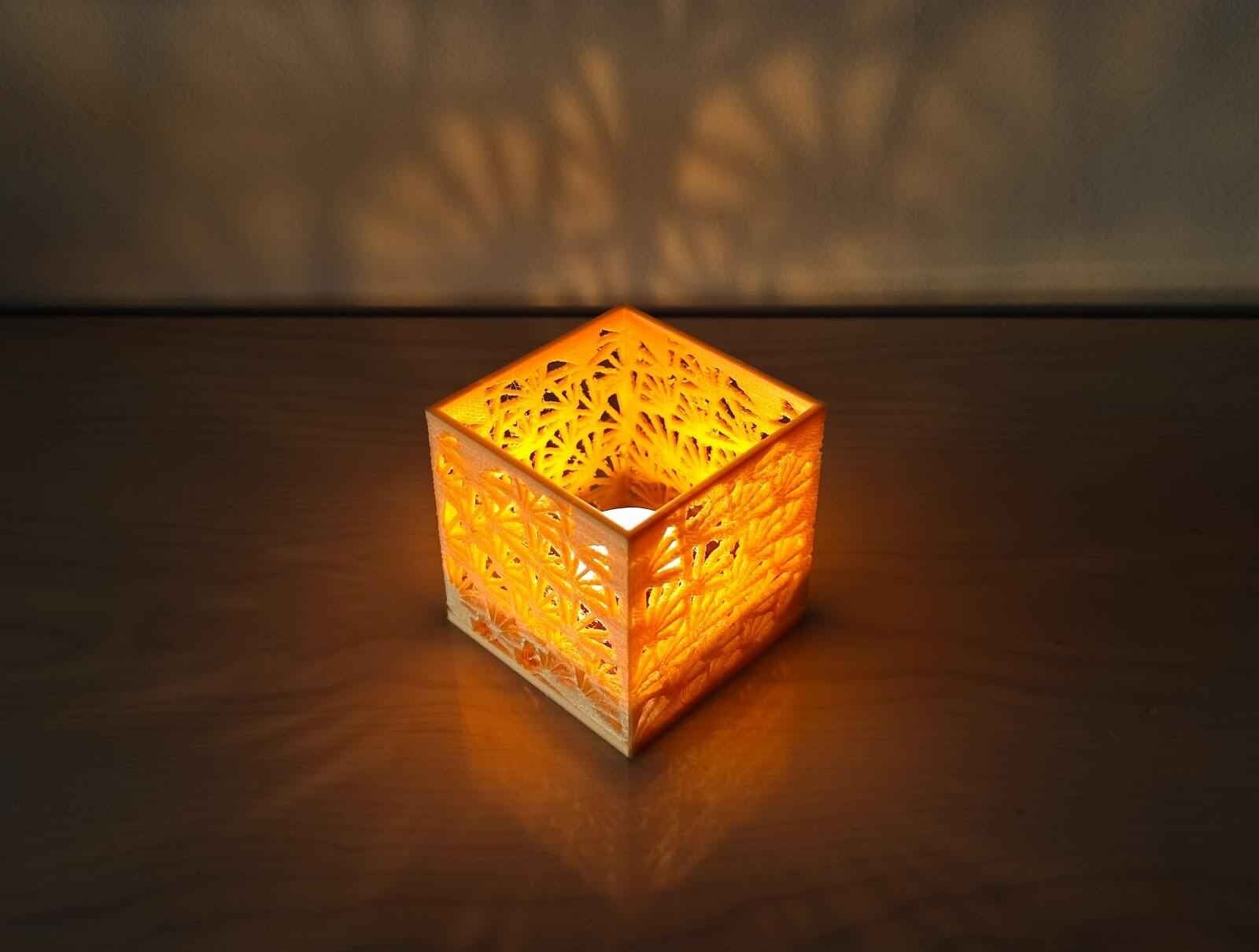 A cube-shaped candle holder ideal for the home. Put your tea candle inside and discover a new lighting decoration. Inspired by a curious geometry that recalls the shape of sea shells. Its parametric shape has been designed in Rhino3D using Grasshopper.
